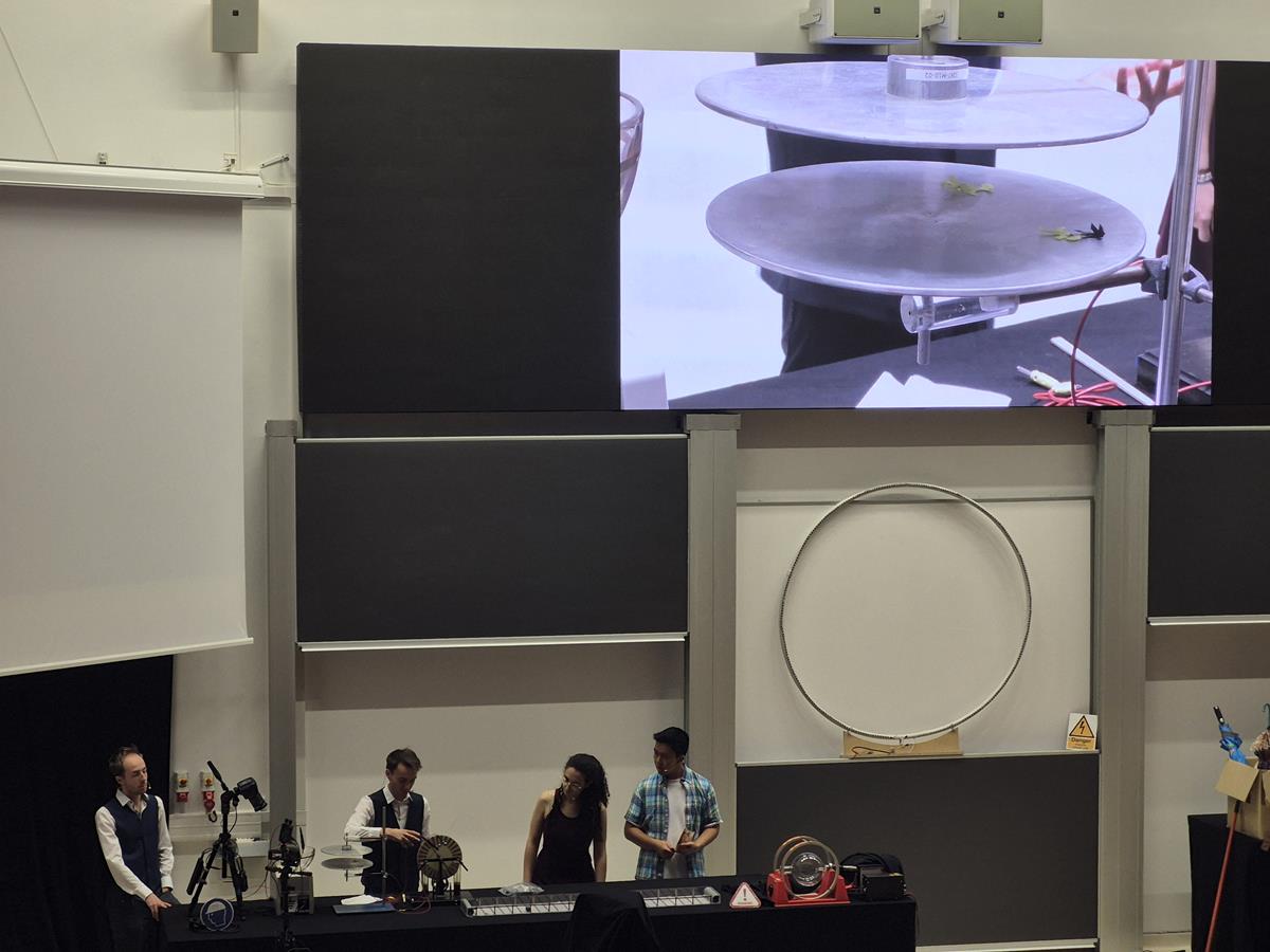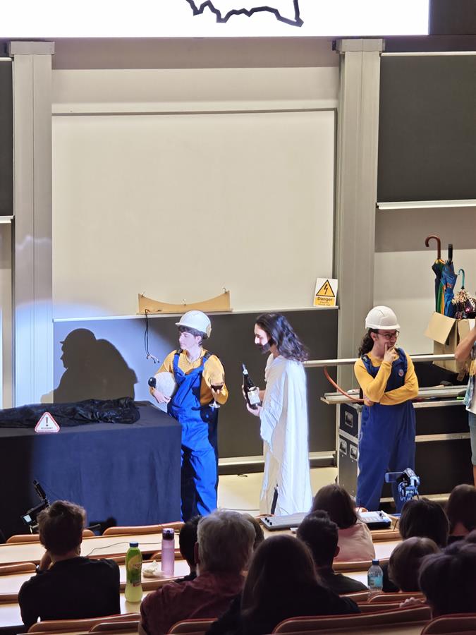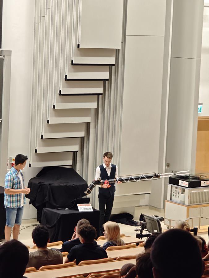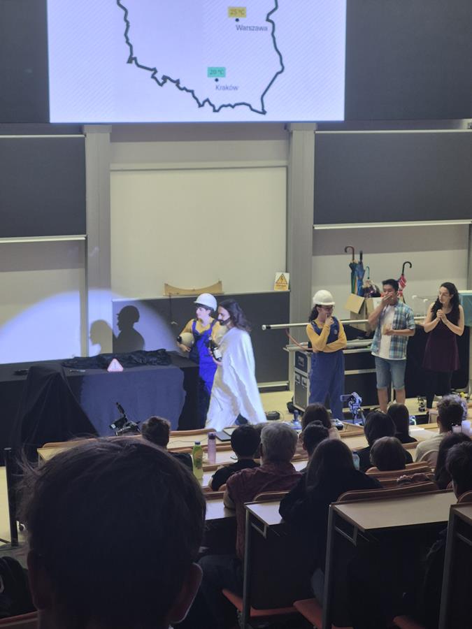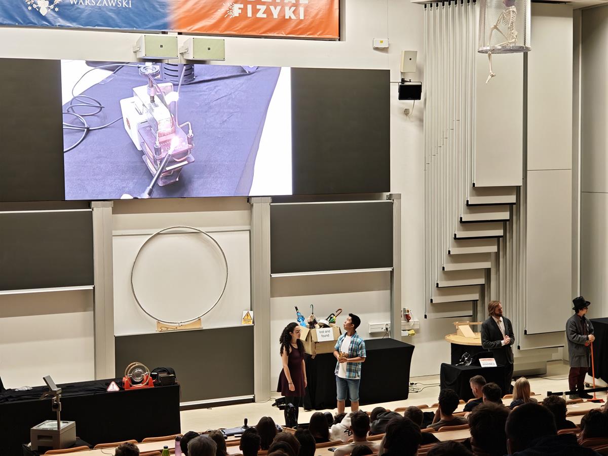 Wtorek, 23 września, upłynął naszym uczniom z klas pierwszych liceum pod znakiem ekscytującego „Physics Show” na Uniwersytecie Warszawskim! To nie było zwykłe doświadczenie – spektakl prowadzony w formie teatralnej przez dynamiczną grupę studentów z Niemiec dosłownie ożywił fizykę! Dzięki ich energicznemu występowi, pełnemu zaskakujących eksperymentów i świetnego humoru, młodzież mogła w niezwykle przystępny sposób zrozumieć proste, a jednak fundamentalne zagadnienia z fizyki. Była to inspirująca lekcja, która pokazała, że nauka potrafi być fascynująca i widowiskowa!