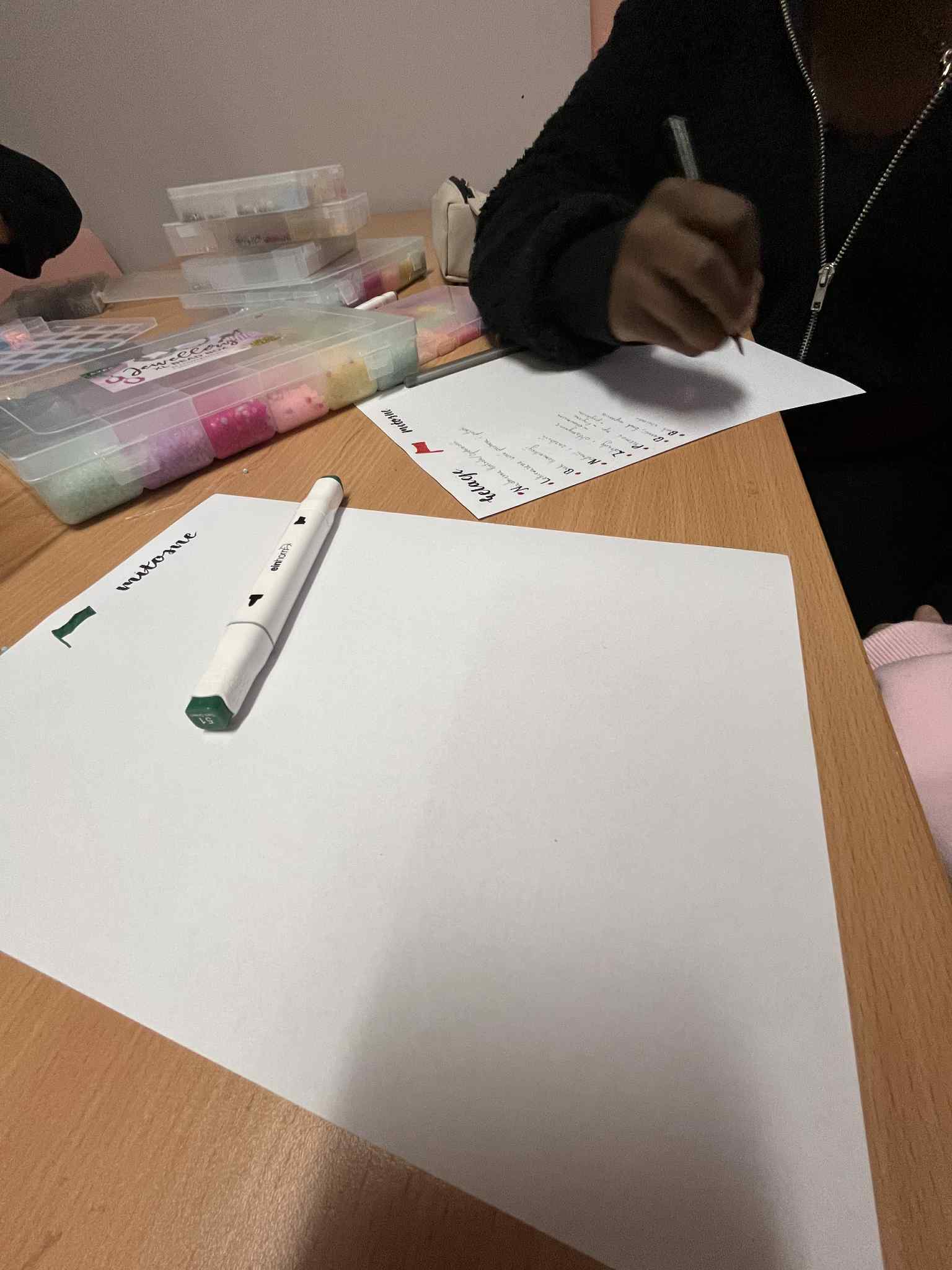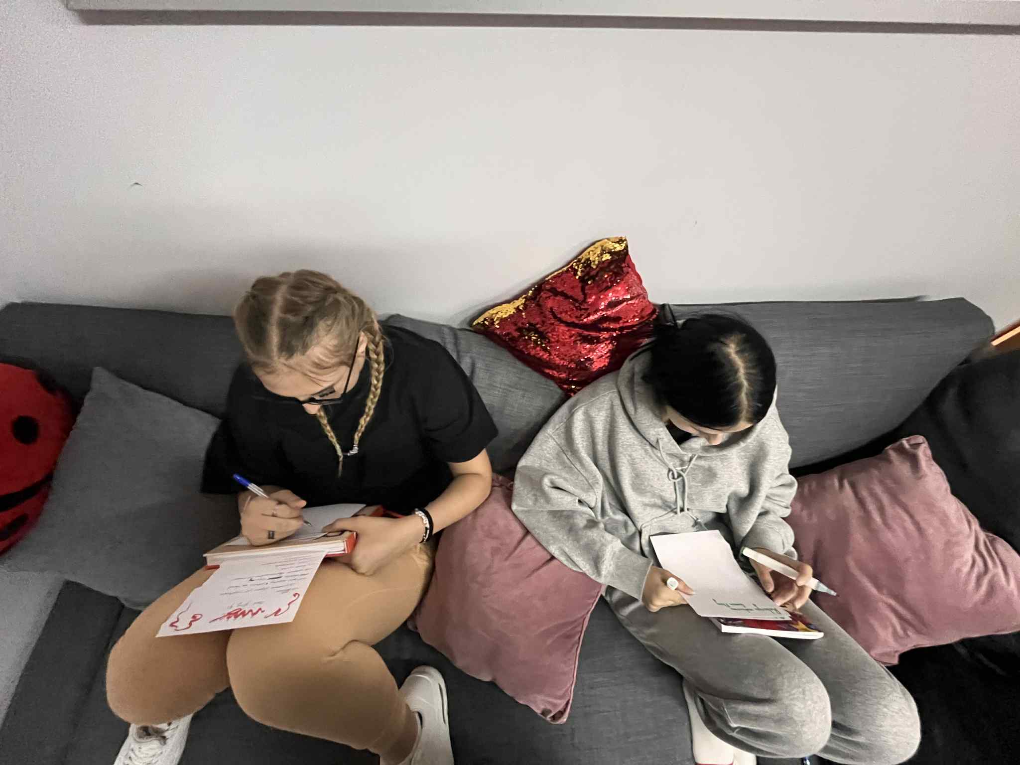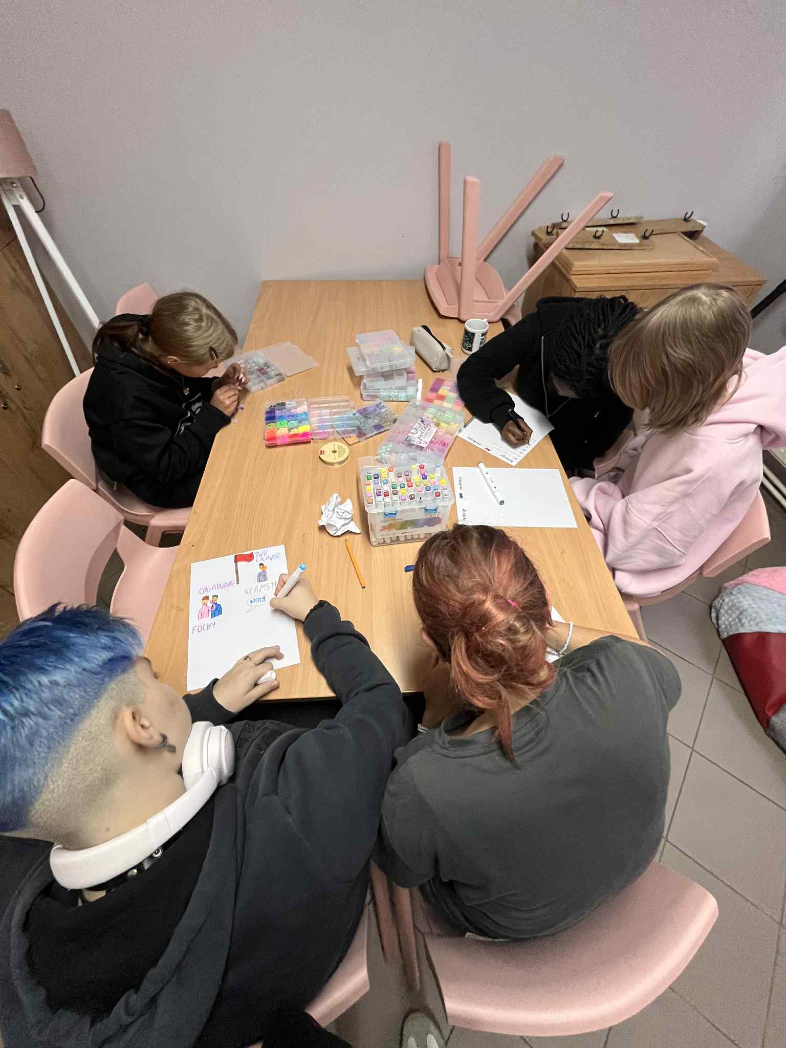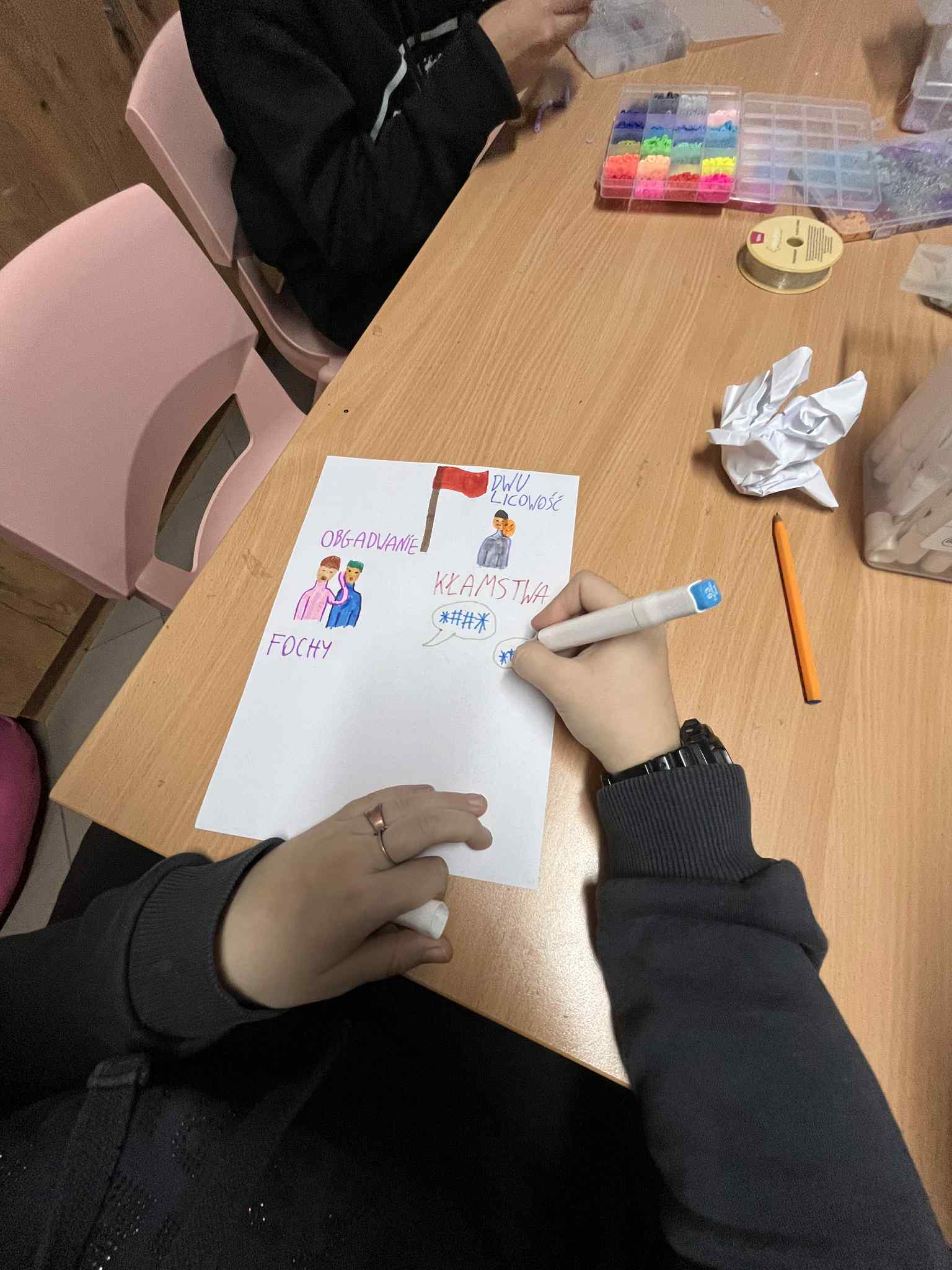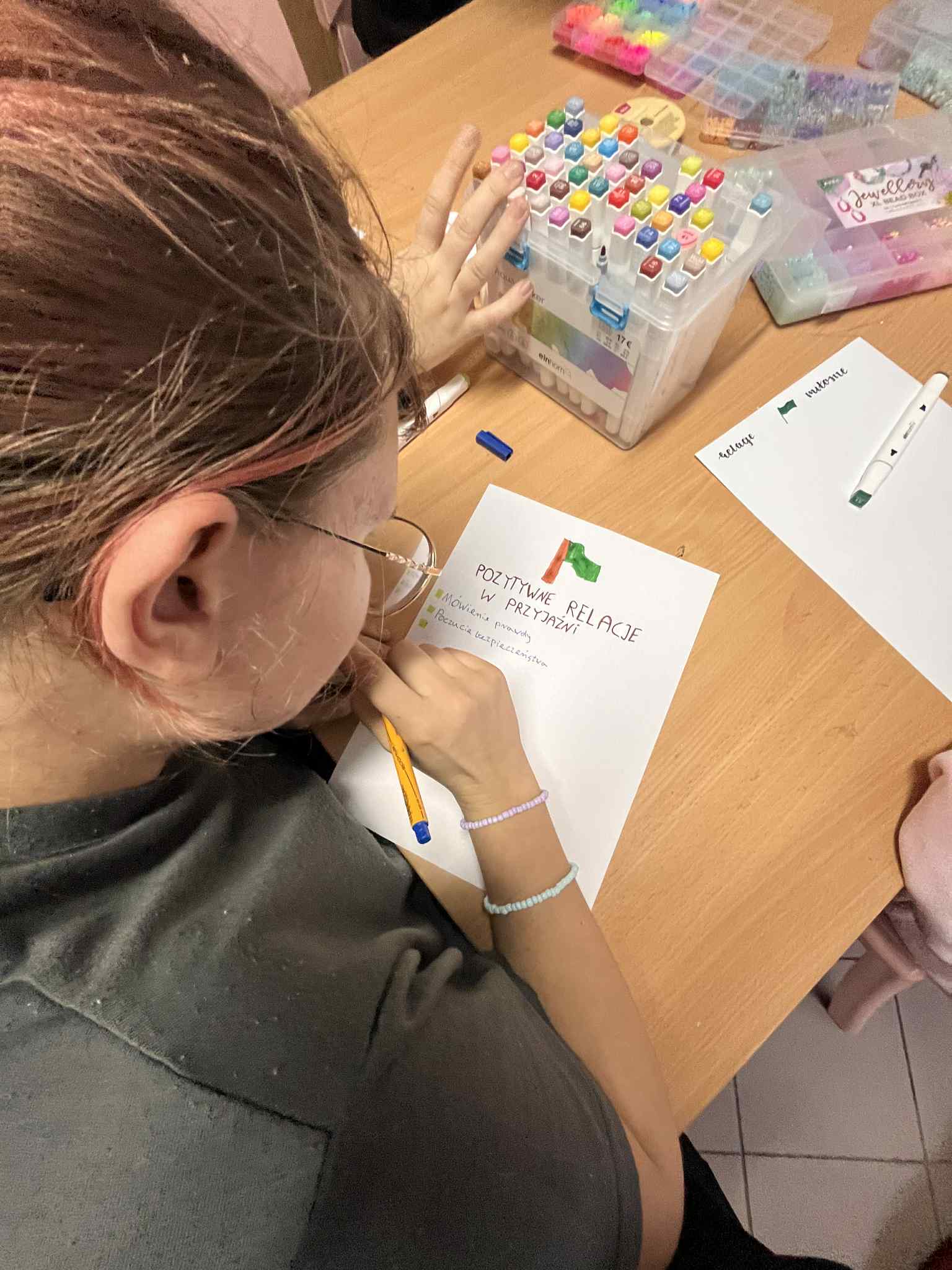 Dziewczyny bardzo zaangażowały się w temat i przygotowywały plakaty, notatki i rysunki, wymieniały się pomysłami i rozmawiały o własnych doświadczeniach. Podczas pracy pojawiały się pytania: co sprawia, że czujemy się dobrze w relacji? Co daje nam poczucie bezpieczeństwa? A co powinno być dla nas ostrzeżeniem?